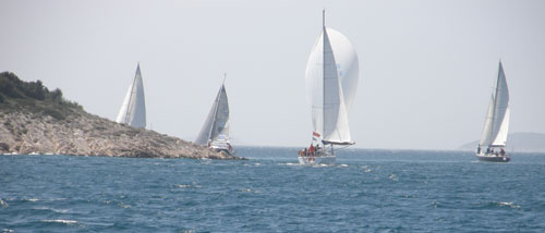 između Zlarina, Prvića i Tijata. Odjedrili smo korektno te smo čak i s dva neuspješna pokušaja razvijanja našeg genakera-spinakera uspjeli ne biti posljednji.