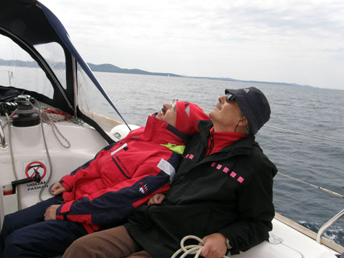 i nije posustao niti nakon svitanja. Na vezu je izmjereno 33 čv. Pojačali smo ekipu Željkom koji već je postaje stalni član posade,