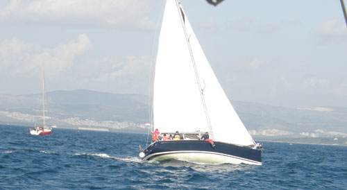 od 15-28 čv.da bi na kraju završili na povjetarcu.Jedrili smo suzdržano sa flokom i drugim kratom glavnog jedra, koje smo postepeno dizali do kraja.