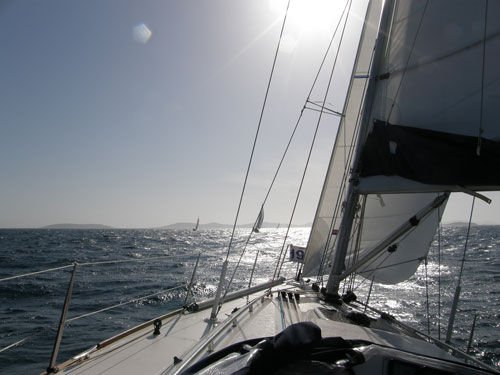 zatim penjanje sve do Žirja, i onda natrag na južni rt Zlarina ,pa niz vjetar uz domaćinski otok u Zlarinsku luku. Eol nas je počastio jačinom vjetra