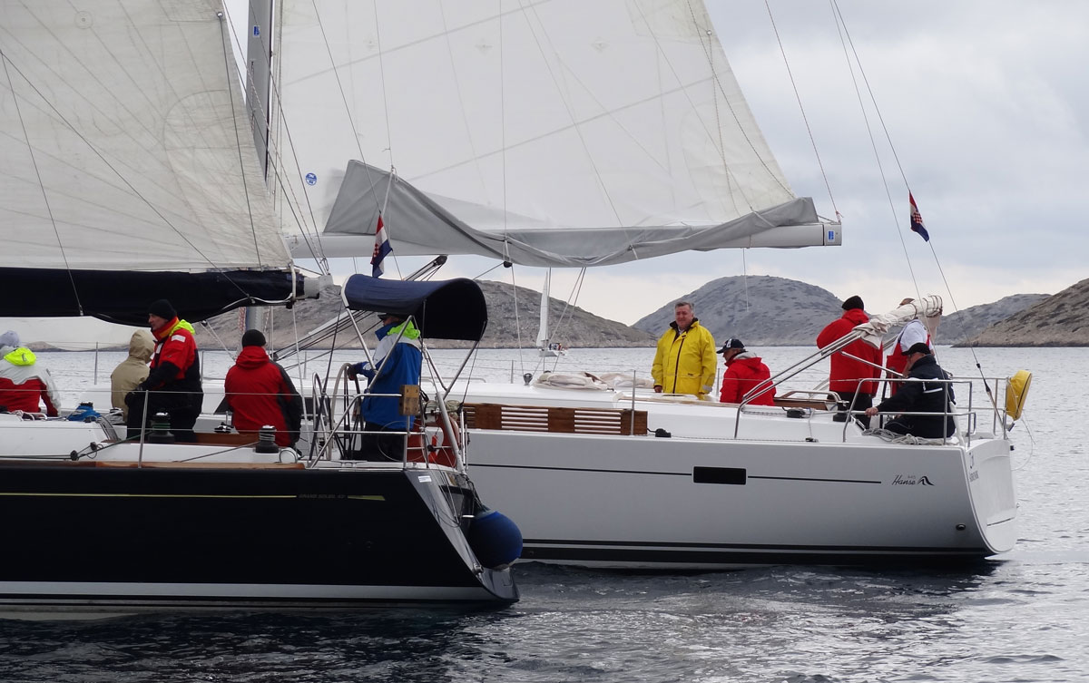 Pratila ju je naša Paula (S 37), pa odmah za njom Lea (S 40) i iza njih Madiba (Leisure 42) te Orca (S 40) s iskusnim jedriličarima iz Vodica a za kormilom je bio Damir Miloš.
